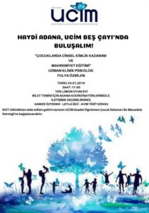 UCIM (Saadet Öğretmen Çocuk İstismarı ile Mücadele Derneği) Değerli Ebeveynler, UCİM'e gönül verenler UCİM BEŞ ÇAYI'NA davetlisiniz! 24 Ocak 2019 Perşembe günü saat 17.00'da Limon Oyun Evi'nin ev sahipliğinde gerçekleştirilecek Beş Çayı etkinliğinde çocuklarınız keyifle,güvenle oyun oynarken Uzman Klinik Psikolog Fulya Özbilen keyifli sunumuyla "Çocuklarda Cinsel Kimlik Kazanımı ve Mahremiyet Eğitimi" konusunda kıymetli bilgilerini paylaşacak. Çocuklarınızın neşeyle oyunlar oynayacağı, sıcacık çayın,lezzetli ikramlıkların,keyifle ve bilgiyle renklendirilmiş harika bir seminerin gerçekleşeceği etkinlikte elde edilen tüm gelir UCİM Saadet Öğretmen Çocuk İstismarı İle…