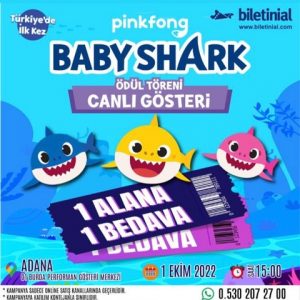 Pinkfong Baby Shark Live Show (Ödül Töreni) Her yaştan seyirci bilete tabidir, 1+1 hediye bilet kampanyası mevcuttur Saat 15:00’te 01 PGM Gösteri Merkezinde. Biletler biletinial.com ‘da ve etkinlik günü gişede