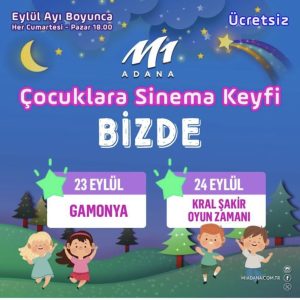 Ücretsiz Yaş sınırı yok Çocuklar için açık havada sinema yeniden m1adana’da! En keyifli filmlerin keyfini birlikte çıkarmak için Eylül ayı boyunca her hafta sonu bize davetlisiniz.