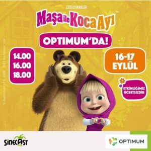 3-9 yaş Ücretsiz 16-17 Eylül 2023 14:00/16:00/18:00 (3 seans) Maşa adlı küçük bir Rus kızının, sirkten emekli olan Mişka adlı bir ayıyla birlikte yaşadığı komedi dolu mecaraları konu alan çizgi dizi Optimum’da yeniden sergilenecek. Türk televizyonlarında izlenme rekorları kıran ve ardından beyaz perdede sevenleriyle buluşan Maşa ve Koca Ayı bu kez Adanalı miniklerle bir araya gelecek.
