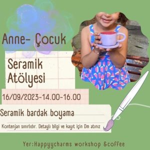 Yaş sınırı yok Çamurun renkli dünyasıyla eğlenceli vakit geçirip aynı zamanda fincan yapmak ister misiniz? Öyleyse Anne-Çocuk Atölyesi tam size göre. Çocukların renkli dünyasıyla kendi hayal güçleri ile özgürce fincan boyayacağız. Kayıt için instagramdan @happyy.charms adresinden mesaj gönderebilirsiniz