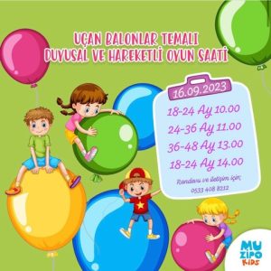 16 Eylül 2023 18-24 ay 10:00/14:00 24-36 ay 11:00 36-48 ay 13:00 Balonlarımızı tasarlayıp uçurmaya hazırsanız sizleri hareketli oyun saatimize bekliyoruz.