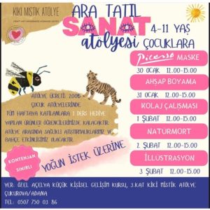 Kiki Mistik Atölyeden çocuklara yarı yıl tatilinde sanat arölyeleri 4-6 ve 7-11 yaş olarak iki grup Bilgi ve rezervasyon: 0507 750 03 86