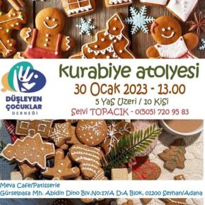 5 Yaş Üstü Düşleyen Çocuklar Derneğinin düzenlediği atölye Saat: 13:00'te Ücret bilgisini arayarak öğreniniz, 150-200 TL arası değişiyor. Rezervasyon: Selvi Topacık - 0505 720 95 83