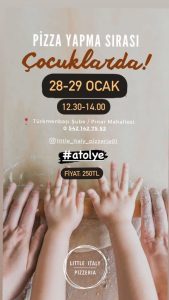 4-10 Yaş Little Italy Pizzeria'da sömestir tatilinde çocuklar pizza yapıyor. 28-29 Ocak Saat 12:30-14:00 arası