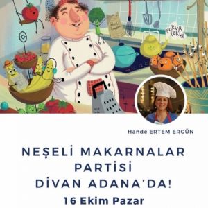 3-9 Yaş Fokur fokur mutfak serisi çocuk kitaplarının yazarı Hande Ertem Neşeli Makarnalar Partisi etkinliği Detaylı bilgi ve bilet satış: 0322 342 17 00