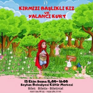 15 Ekim Cumartesi Seyhan Belediyesi Yaşar Kemal Kültür Merkezi’nde Seanslar 14:00 ve 16:00’da İletişim: 0507 294 86 55
