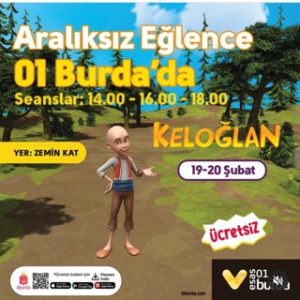 01 Burda Avm’de Keloğlan gösterisi Ücretsiz 19-20 Şubat Seanslar: 14:00-16:00-18:00 Zemin kat