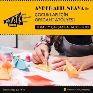 Ayber Altunkaya ile Akustik Kültür’de Saat 14:00-15:00 arası origami atölyesi Rezervasyon: 0532 307 74 78