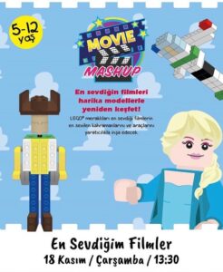 5-12 Yaş Bricks4kidz ile çocuklar ara tatilde legolarla figürler oluşturuyorlar. Eğlenirken öğreniyorlar. 18 Kasım Çarşamba - 13:30 - En Sevdiğim Filmler Düzenli atölyelere günlük katılım 100 TL, ara tatilde 5 günlük katılım 400 TL. İletişim: 0549 540 84 04