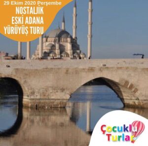 5 yaş üstü Adana Çocuklu Turlar 29 Ekim günü saat 14:00-17:00 arası Atatürk Evi, Sinema Müzesi, Taş Köprü, Ulu Camii ve Büyük Saat olmak üzere çocuklu ailelerle yürüyüş turu düzenliyor. İletişim: 0532 622 11 36