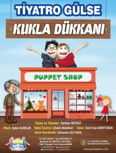 Tiyatro Gülse'nin yeni oyunu “KUKLA DÜKKANI” saat 14:00’de sizlerle. Rezervasyon için : 0532 060 1076 - 0535 460 7071 - 0322 436 8891