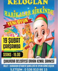 3 YAŞ ÜSTÜ Keloğlan Çocuk Tiyatrosu Çukurova Belediyesi Orhan Kemal Sahnesi'nde sizlerle. Bilgi: 0536 910 8615
