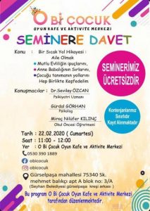 Bir Sıcak Yol Hikayesi: Aile Olmak Mutlu evliliğin ipuçları, anne babalığın sırları ve çocuğu tanımanın yollarının konuşulacağı ücretsiz seminer O Bi Çocuk'ta. Kontenjan sınırlıdır. Bilgi ve kayıt: 0530 390 1889
