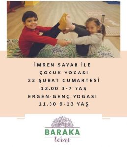 İmren Sayar ile Çocuk Yogası Baraka Teras'da. 11:30 = 3-7 YAŞ 13:00 = 9-13 YAŞ