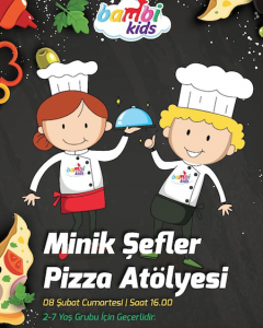 2-7 YAŞ “Mini Pizzacı" atölyesine katılmak için bekleyen Minik şeflerimize müjde. Cumartesi Saat 13:30 ve 16:00 da. Kontenjan sınırlıdır.