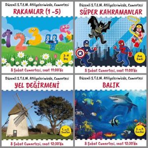 Bricks4kidz ile çocuklar legolarla figürler oluşturuyorlar. Eğlenirken öğreniyorlar. 8 Şubat Cumartesi 3-4 yaş – Saat 11:00 – Rakamlar Ana sınıfı – Saat 11:00 - Süper Kahramanlar 1. ve 2. Sınıflar – Saat 12:30 - Yel Değirmeni 3.ve 4. Sınıflar – Saat 12:30 Balık Düzenli atölyelere günlük ,aylık ve dönemlik kayıt olabilirsiniz. Tek günlük katılım 70 TL. İletişim: 0549 540 84 04