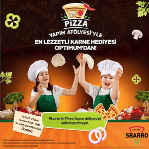 Seanslar: 14:00 ve 16:00 2. Kat Çocuk Oyun alanında Sbarro ile ücretsiz pizza atölyesini kaçırmayın.