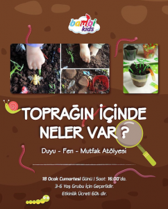 3-6 YAŞ İçinde gözlem, bilgi, deney, duyusal aktivite ile dolu dolu bir atölyeye sizleri bekliyor. Rezervasyon yaptırmayı unutmayınız.