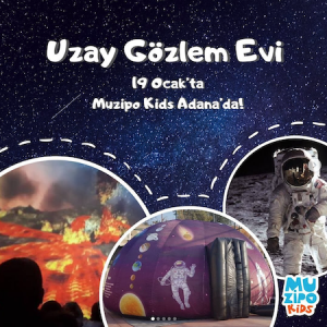3 YAŞ ÜZERİ Uzay Gözlem Evi 19 Ocak Pazar günü Muzipo Kids Adana’da! Uzayı, evrenimizi ve denizlerin altını keşfetmeye hazır olun! Kontenjan sınırlıdır. Detaylı bilgi ve kayıt için: 0533 408 82 12