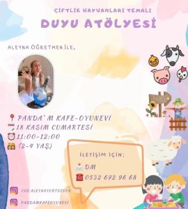 2-4 yaş Çok eğlenceli Çiftlik Hayvanları Temalı Duyu Atölyesinde @cge.aleynayurtseven sizlerle buluşuyor. Sınırlı Kontenjan Rezervasyon ve bilgi için: @pandamkafeoyunevi’ne mesaj atabilir, 0532 692 96 68 numaralı telefonu arayabilirsiniz.