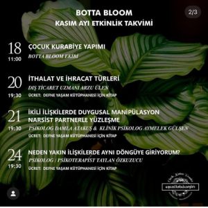 4-8 yaş Botta Bloom Ekibi tarafından düzenlenen Çocuk Kurabiye Yapımı Atölyesinde leziz bir eğlence sizi bekliyor. Rezervasyon ve bilgi için: @bottabloom sayfasına mesaj atabilir, 0850 8087235 numaralı telefonu arayabilirsiniz.